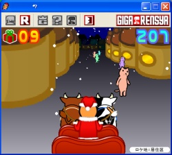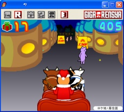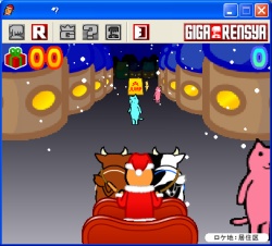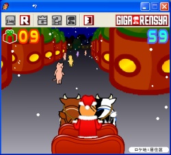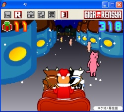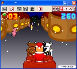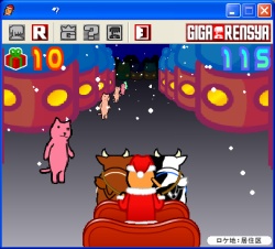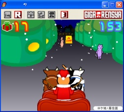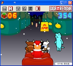 二、分發禮物:一次點一隻 kutar 只能得到一分,完全沒有效率可言,一定要靠「拖曳」的方式加分。拖曳時左鍵不能放開,也代表此時不能移動方向,所以要選個前方無障礙的路段來分發禮物。如果才拖曳兩、三隻前方就出現障礙就可以馬上放棄了,這代表這次發放完全沒有價值可言,留著禮物不要浪費才好。要踩 "JUMP" 板前有段完全沒有危險的時間,可對著路的盡頭猛發一通。